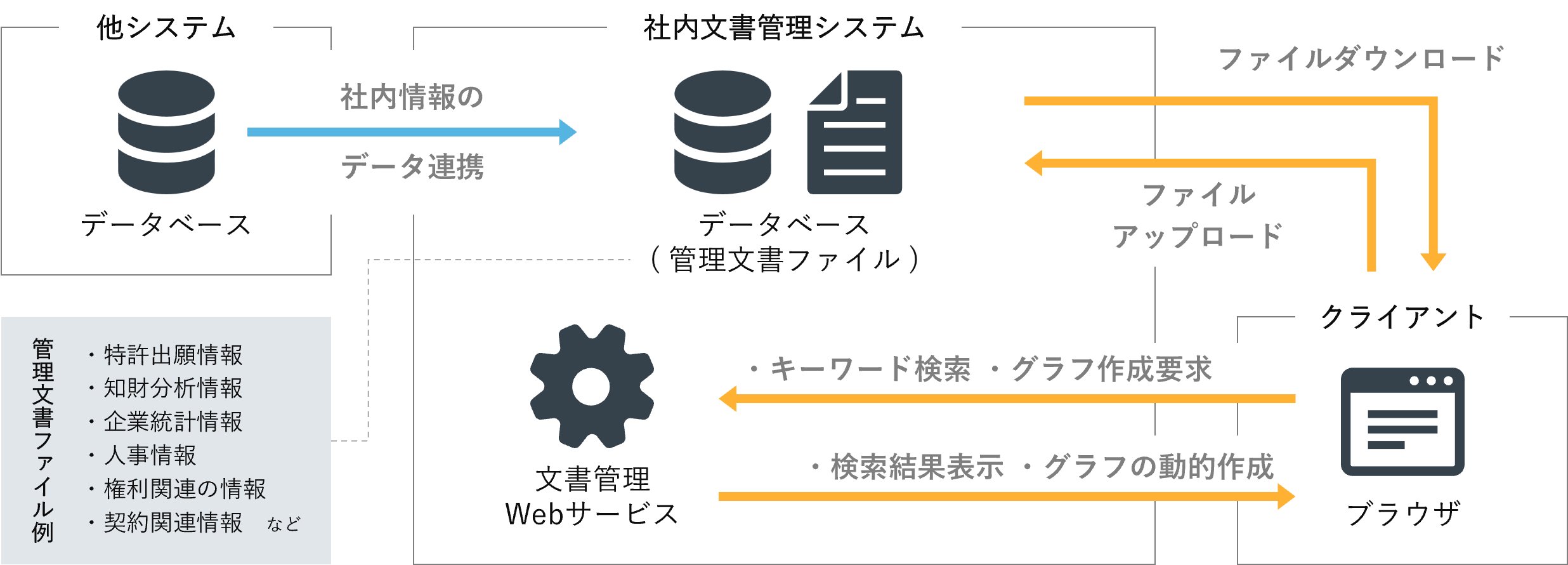 Webシステム上で、安全かつ効率的に社内文書を公開できる仕組みになります。