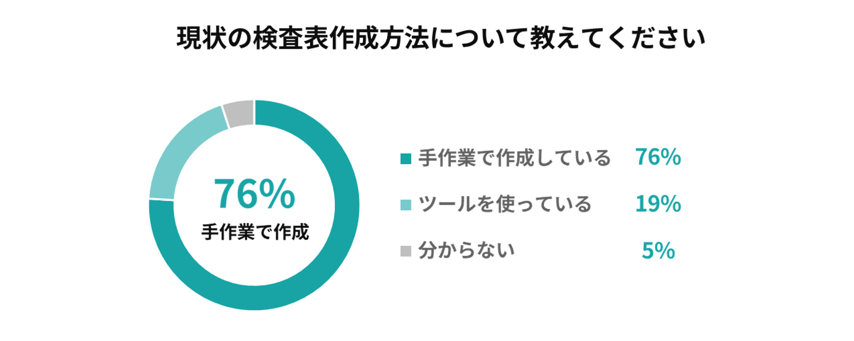 この「検査表」を手作業で作成していると回答した方が、全体の76%にのぼりました。(以下、図)