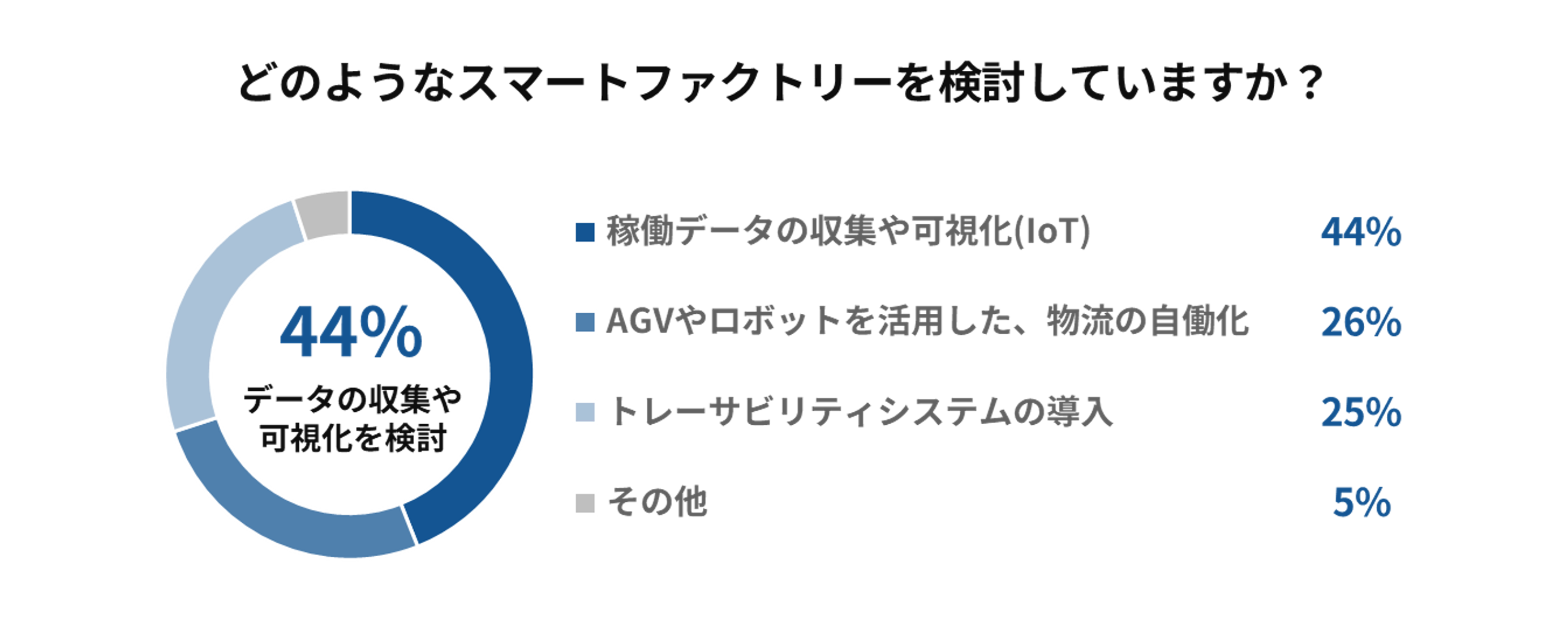 これは、スマートファクトリー実現の第一歩として、“現場の見える化”を重視する企業が多いことを示しています。