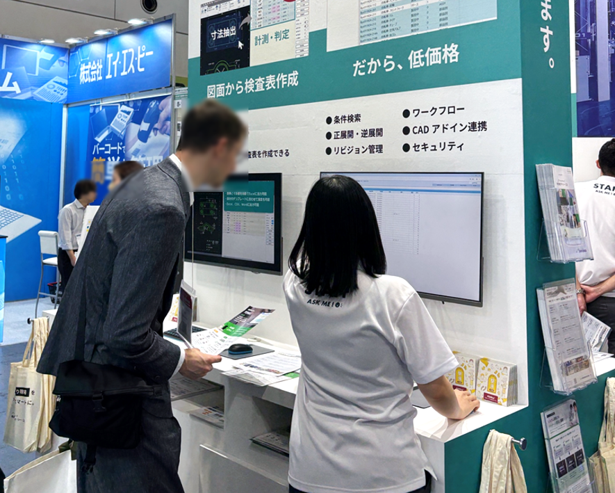 『検査表 自動作成』の文字を見て興味を持ってくださる方が非常に多く、検査業務の自動化・効率化への関心の高さが感じられました。