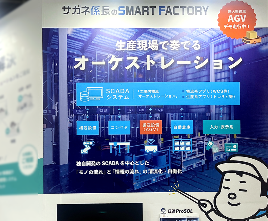 サガネ係長のSMART FACTORYでは、単にAGVによる搬送を自働化するだけでなく、異なる物流設備との連携、さらには入力・表示端末との接続が可能です。